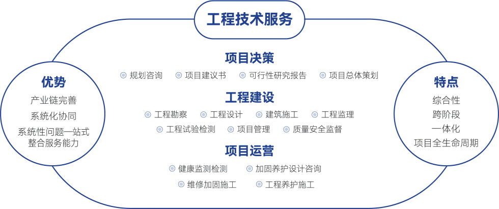 建发宝马bm555聚焦工程咨询与工程施工“双轮驱动”,深耕新建工程与在役工程“两域建设”,以“工程医院”理念为指引,围绕工程开展基础设施“健康检测、病害诊断、处置方案、加固修缮、应急抢修”一体化服务,全面覆盖公路桥隧、水运轨交、市政房建等专业领域,推动资源共享、优势互补和价值共赢。
